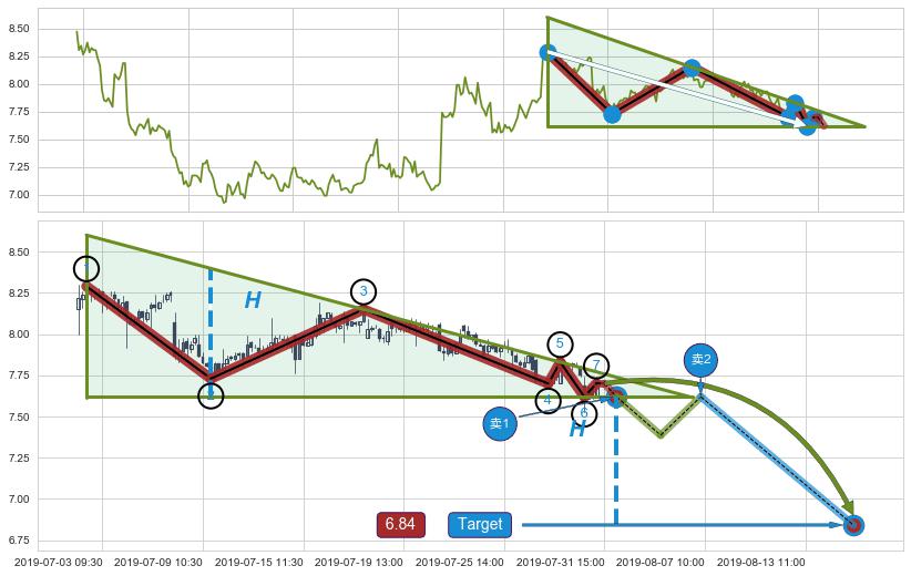 ➣ 【已确认突破】最后价格:7.70与最小【整理】第一目标价格→(08-08:15: 6.61 )相较: 下跌空间【较大】