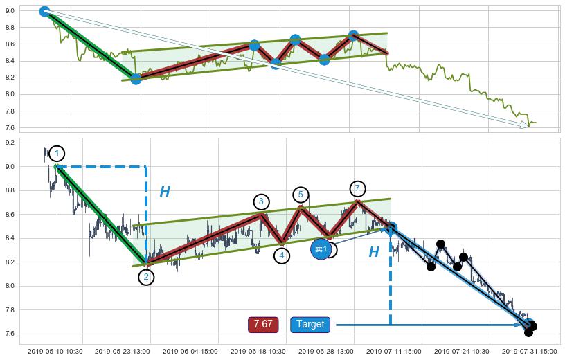 ➣ 最小中继整理跌幅→𝐇: 0.8160 (𝐇旗杆的长度:旗杆起点→顶点)