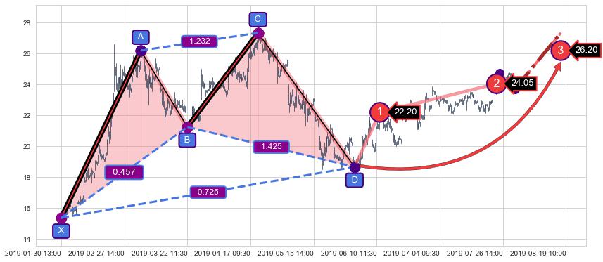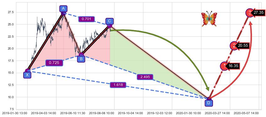 ➣ 未完成【蝴蝶】形态起点X: 01-30:13, 已到达C点: 07-30:13, 预测最终D点: 02-14:12, 共1564交易小时