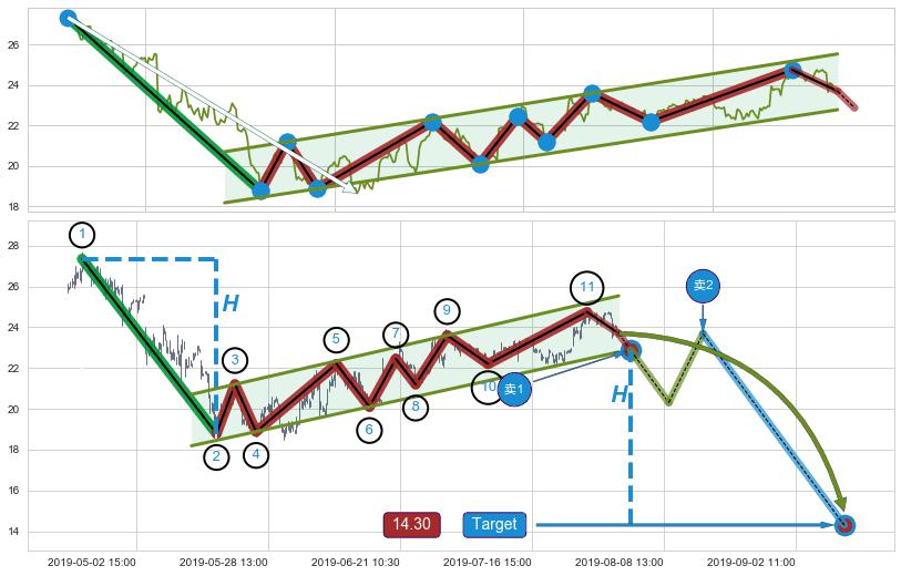 ➣ 最小中继整理跌幅→𝐇: 8.57 (𝐇旗杆的长度:旗杆起点→顶点)