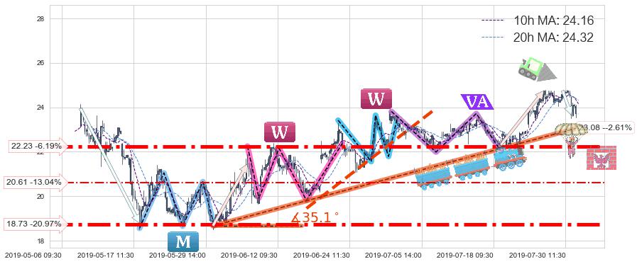 ♘ 支撑价格位22.23,可信任强度93.80%,距离最后交易2019-07-31 15:00形成的收盘价格23.70相差 -6.19%