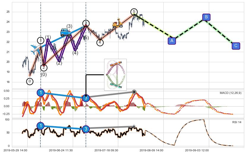 ➣ 第一, 三, 五浪上涨动能逐渐【衰弱变小】,趋势呈现不稳迹象