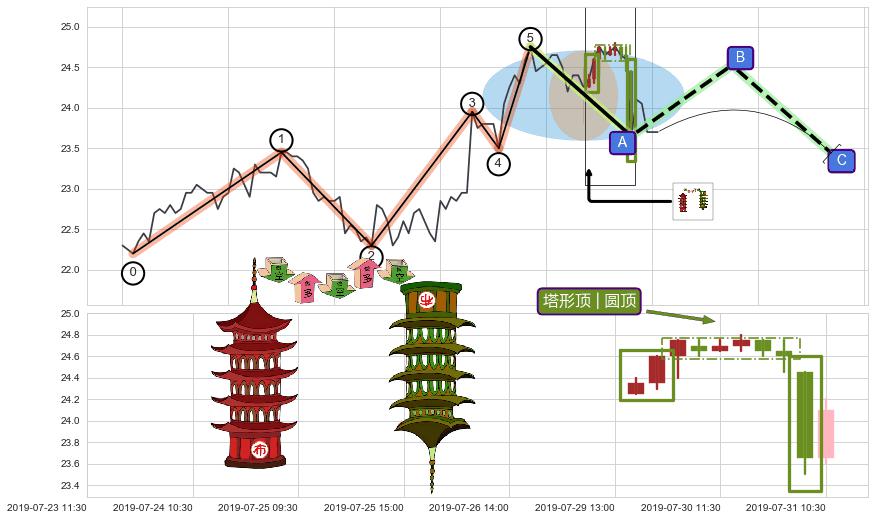 | 5 🅚:顶部尽头线(下山虎) ➕ 🌊:波浪理论猜想上涨浪5已形成,猜想后续形成回调abc下跌(均值回复) ☞ 看空信号 ⇥ 【🅚线】交织【图形】⇥ 综合量化分数: 47 | > |