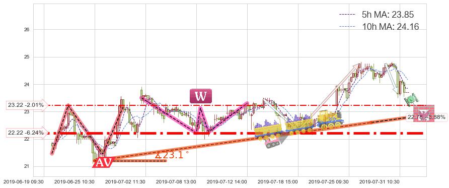 ♘ 支撑价格位22.22,可信任强度93.01%,距离最后交易2019-07-31 15:00形成的收盘价格23.70相差 -6.24%