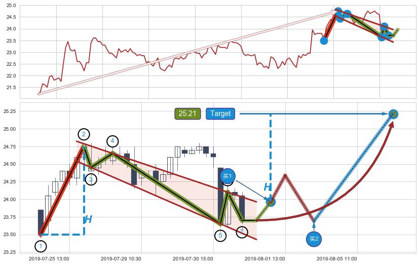 ➢ 【仅预测突破】最后价格:23.70与预测突破价格:23.96→【空间中等】后续最小【整理】第一目标价格→(08-06:10: 25.21 )