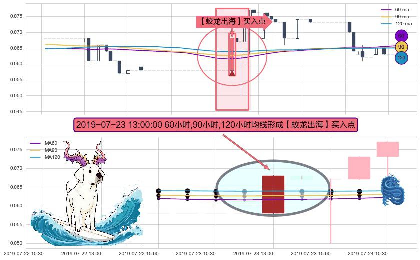 ⚀ 2019-07-23 13:00:00小时显现 60小时-90小时-120小时均线 【蛟龙出海】买入点 看多信号,后市看涨,买入