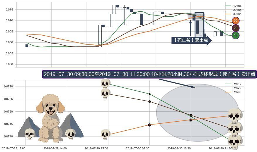 ⚀ 2019-07-30 10:30:00-小时至2019-07-30 11:30:00-小时显现 10小时-20小时-30小时均线 【死亡谷】卖出点 看空信号,后市看跌,卖出