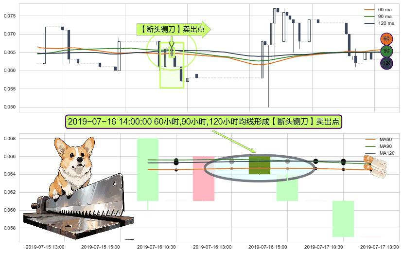 ⚀ 2019-07-16 14:00:00小时显现 60小时-90小时-120小时均线 【断头铡刀】卖出点 看空信号,后市看跌,卖出