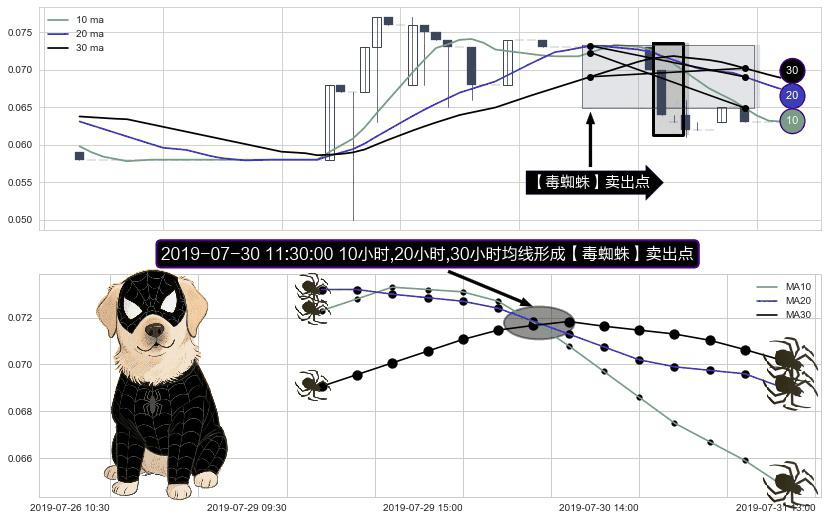 ⚀ 2019-07-30 11:30:00小时显现 10小时-20小时-30小时均线 【毒蜘蛛】卖出点 看空信号,后市看跌,卖出