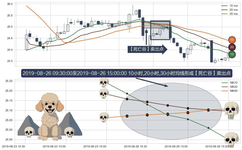 形态多维评估: ⚀ 2019-08-26 10:30:00-小时至2019-08-26 15:00:00-小时显现 10小时-20小时-30小时均线 【死亡谷】卖出点 看空信号,后市看跌,卖出