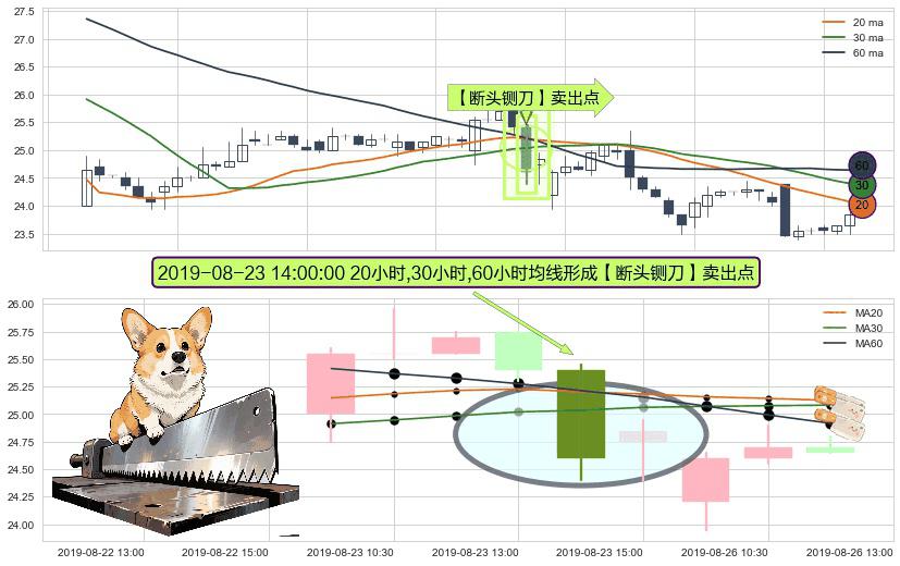 形态多维评估: ⚀ 2019-08-23 14:00:00小时显现 20小时-30小时-60小时均线 【断头铡刀】卖出点 看空信号,后市看跌,卖出