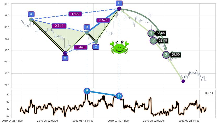 ➢ 谐波价格D点比B点高 ⤴,【RSI】指标D点比B点低 ⤵️