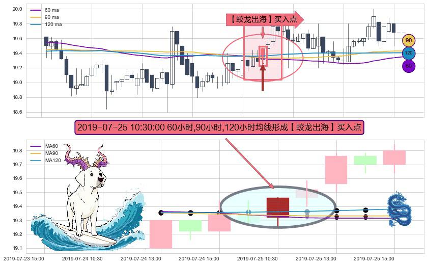 ⚀ 2019-07-25 10:30:00小时显现 60小时-90小时-120小时均线 【蛟龙出海】买入点 看多信号,后市看涨,买入