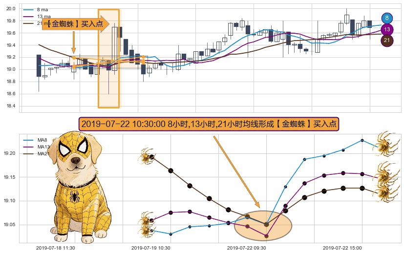 ⚀ 2019-07-22 10:30:00小时显现 8小时-13小时-21小时均线 【金蜘蛛】买入点 看多信号,后市看涨,买入