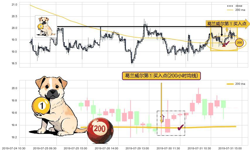⚀ 2019-07-29 15:00:00-小时显现 葛兰威尔均线 200小时均线 第买①入点 走势反转见底信号,后市看涨,买进信号