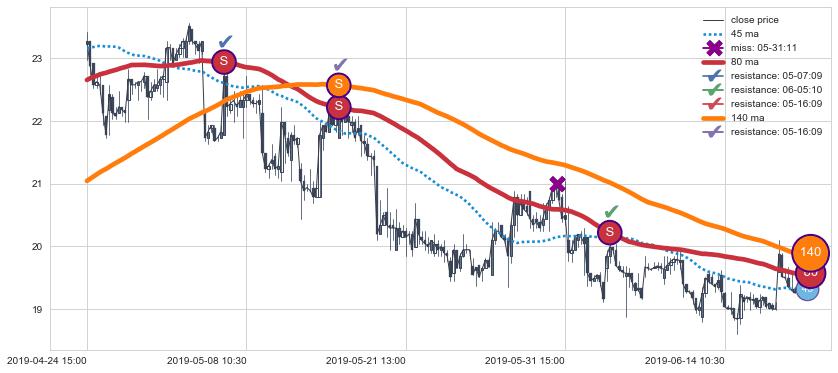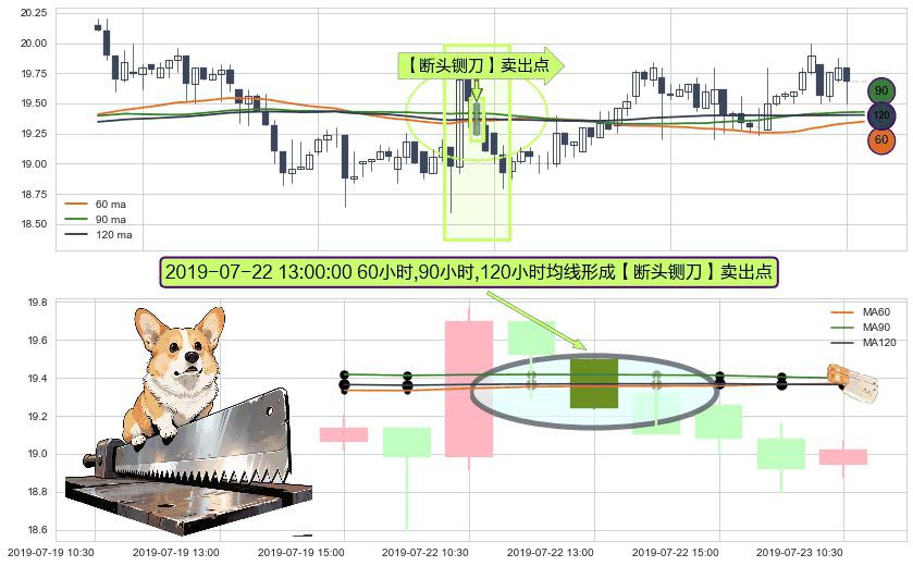 ⚀ 2019-07-22 13:00:00小时显现 60小时-90小时-120小时均线 【断头铡刀】卖出点 看空信号,后市看跌,卖出