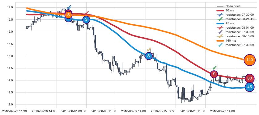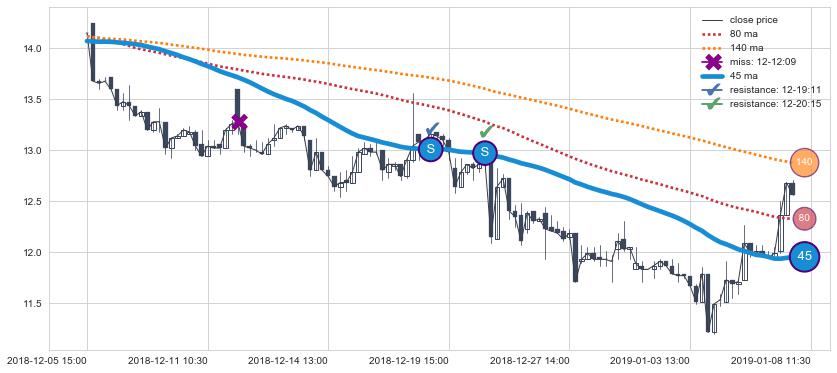 ➢ 最优均线组合共正确确认支撑阻力信号12处,正确确认率 66.67%