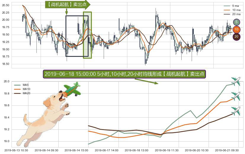 ⚀ 2019-06-14 15:00:00小时-2019-06-20 15:00:00小时显现 5小时-10小时-20小时均线 【战机起航】卖出点 看空信号,后市看跌,卖出