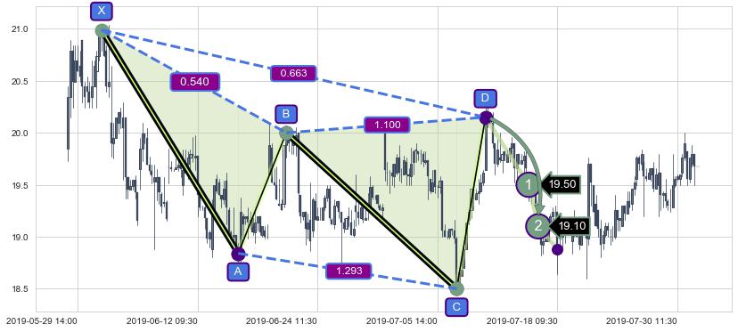 ➣ BC回撤位置在AB的77.0%,符合形态要求
