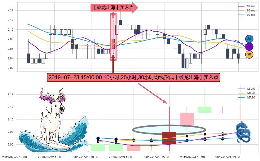 形态多维评估: ⚀ 2019-07-23 15:00:00小时显现 10小时-20小时-30小时均线 【蛟龙出海】买入点 看多信号,后市看涨,买入