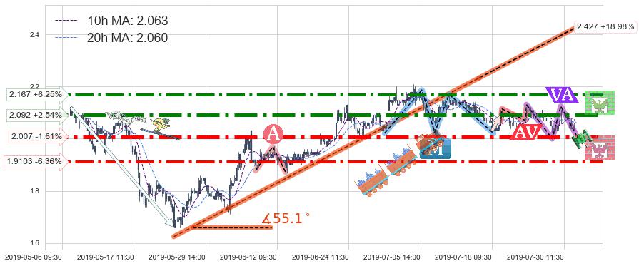 ♘ 阻力价格位2.092,可信任强度88.37%,距离最后交易2019-07-31 15:00形成的收盘价格2.040相差 +2.54%