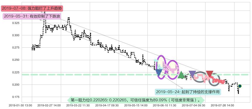 ♘ 阻力价格位0.220265,可信任强度89.09%,距离最后交易2019-07-31 15:00形成的收盘价格0.197000相差 +11.81%