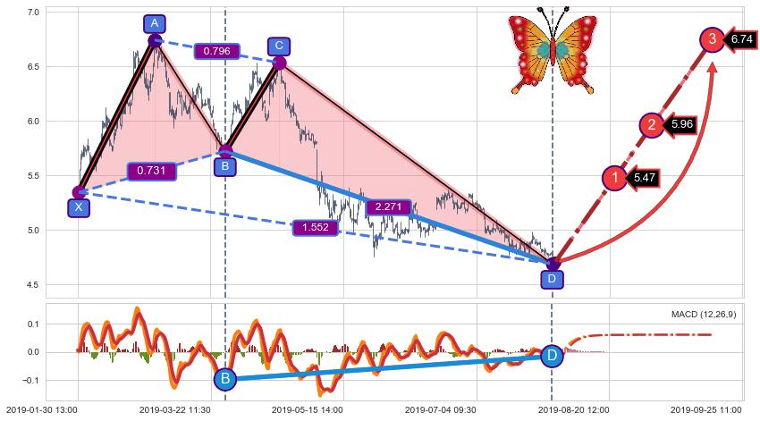 ➣ 已完成【蝴蝶】形态起点X: 01-30:15, 终点D: 07-31:09, 共713交易小时