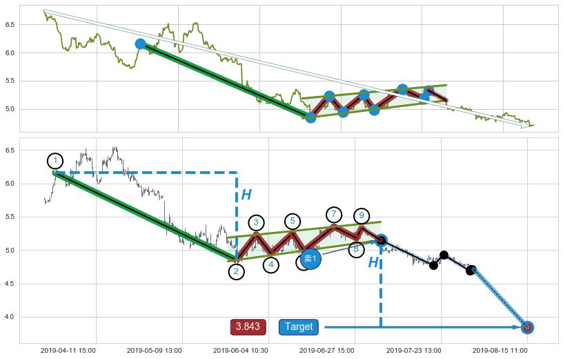 ➣ 最小中继整理跌幅→𝐇: 1.3070 (𝐇旗杆的长度:旗杆起点→顶点)