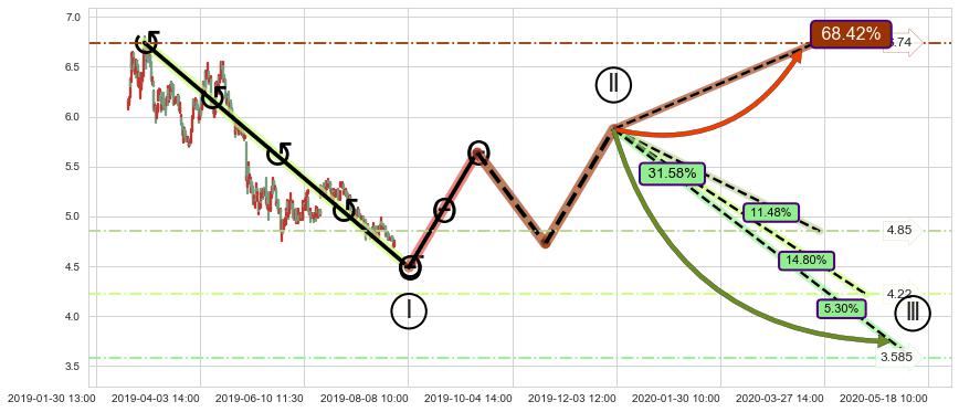 ➣ 大趋势循环浪继续向下概率31.58%