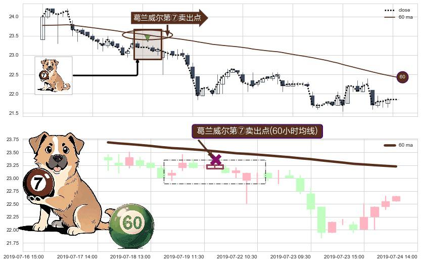 ⚀ 2019-07-19 13:00:00-小时显现 葛兰威尔均线 60小时均线 第⑦卖出点 下降趋势的中继信号,后市看跌,卖出信号