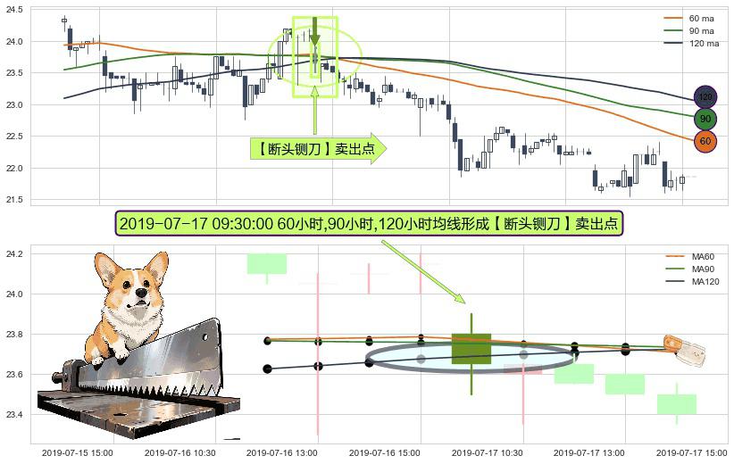 ⚀ 2019-07-17 09:30:00小时显现 60小时-90小时-120小时均线 【断头铡刀】卖出点 看空信号,后市看跌,卖出