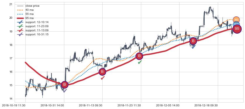 ➢ 最优均线组合共正确确认支撑阻力信号10处,正确确认率 58.82%