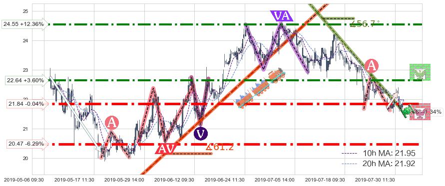 ♘ 阻力价格位22.64,可信任强度84.76%,距离最后交易2019-07-31 15:00形成的收盘价格21.85相差 +3.60%