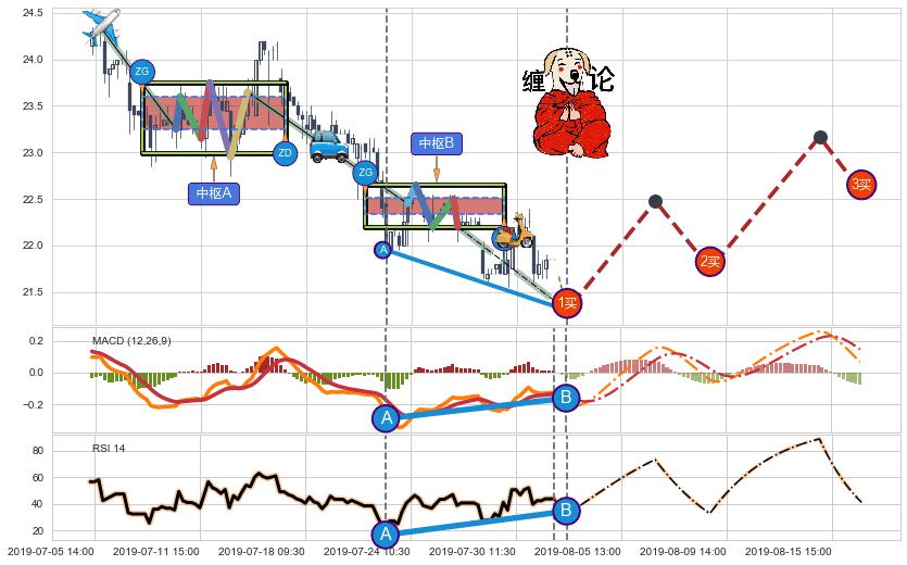 ➣ 【未完成】缠论 起点:07-05:15, 完成第1中枢A,完成第2中枢B,到达07-31:15