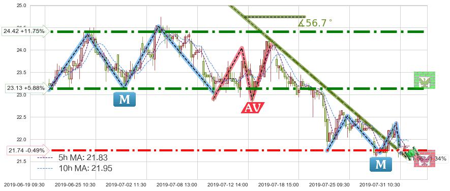 ♘ 支撑价格位21.74,可信任强度72.25%,距离最后交易2019-07-31 15:00形成的收盘价格21.85相差 -0.49%