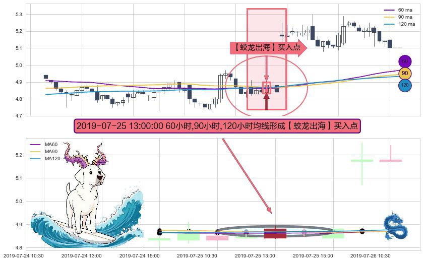 形态多维评估: ⚀ 2019-07-25 13:00:00小时显现 60小时-90小时-120小时均线 【蛟龙出海】买入点 看多信号,后市看涨,买入