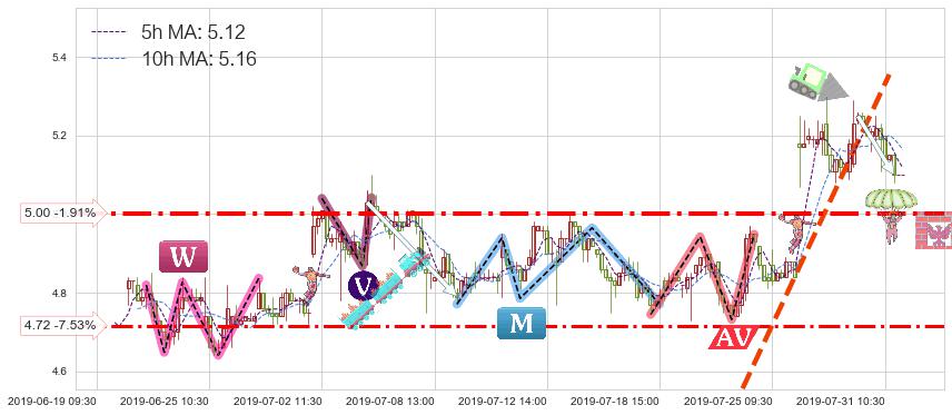 ♘ 支撑价格位5.00,可信任强度84.07%,距离最后交易2019-07-31 15:00形成的收盘价格5.10相差 -1.91%