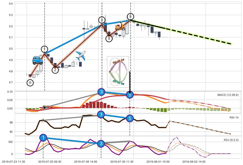 ➢ 1,3,5驱动浪MACD, RSI, KDJ走势都出现【常规背离】反转信号增强