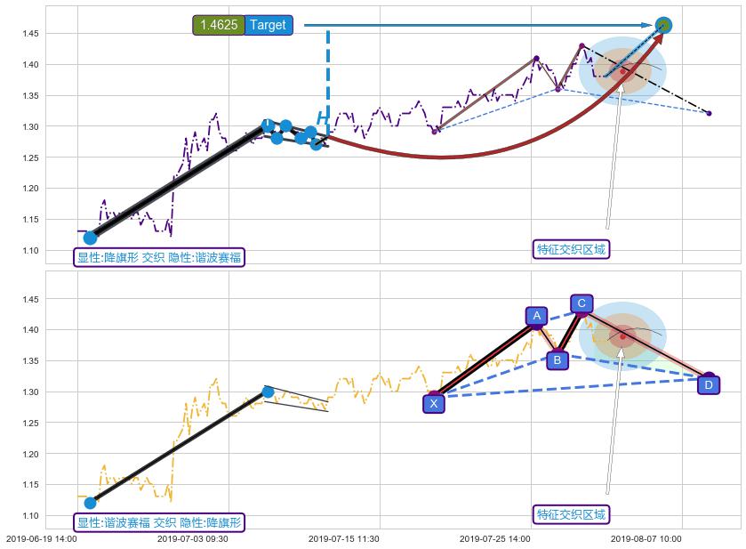 ➣ 未完成【赛福】形态起点X: 07-18:11, 已到达C点: 07-30:13, 预测最终D点: 08-08:13, 共88交易小时