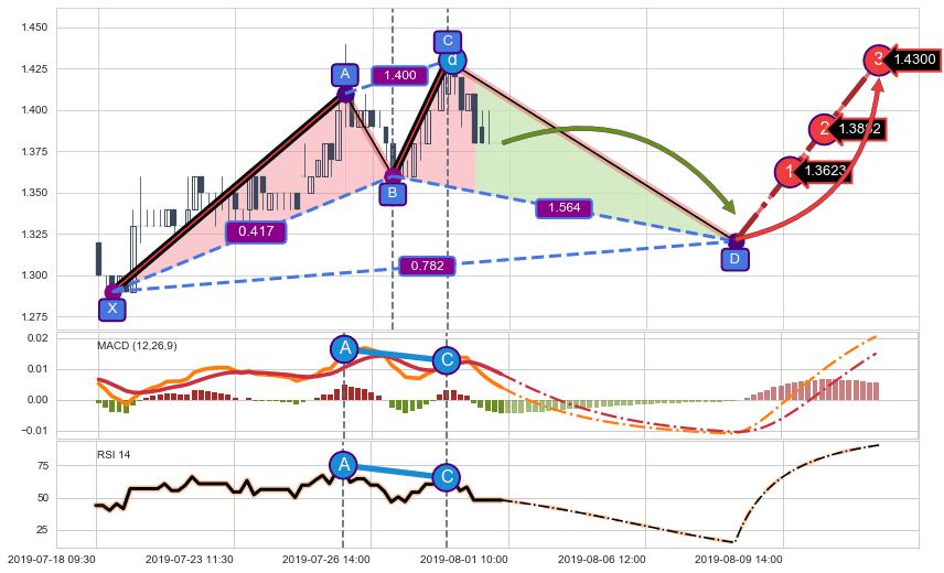➣ D点拟合预测价格1.3205,距离最后交易收盘价格1.3800相差 -4.31%