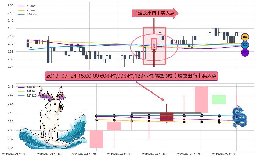 ⚀ 2019-07-24 15:00:00小时显现 60小时-90小时-120小时均线 【蛟龙出海】买入点 看多信号,后市看涨,买入