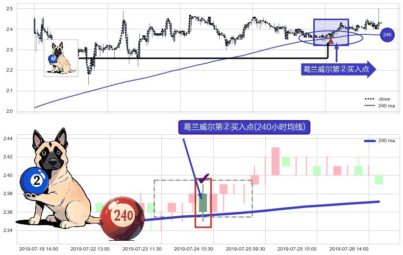 ⚀ 2019-07-24 09:30:00-小时显现 葛兰威尔均线 240小时均线 第②买入点 上升趋势的中继信号,后市看涨,买进信号