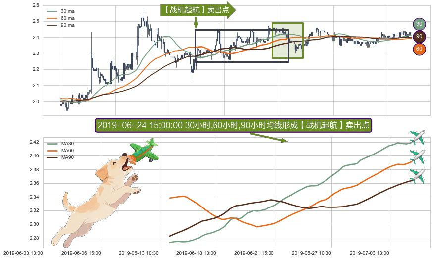⚀ 2019-06-13 15:00:00小时-2019-07-04 15:00:00小时显现 30小时-60小时-90小时均线 【战机起航】卖出点 看空信号,后市看跌,卖出