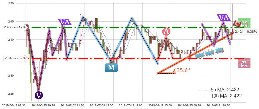 ♘ 阻力价格位2.433,可信任强度94.91%,距离最后交易2019-07-31 15:00形成的收盘价格2.430相差 +0.12%
