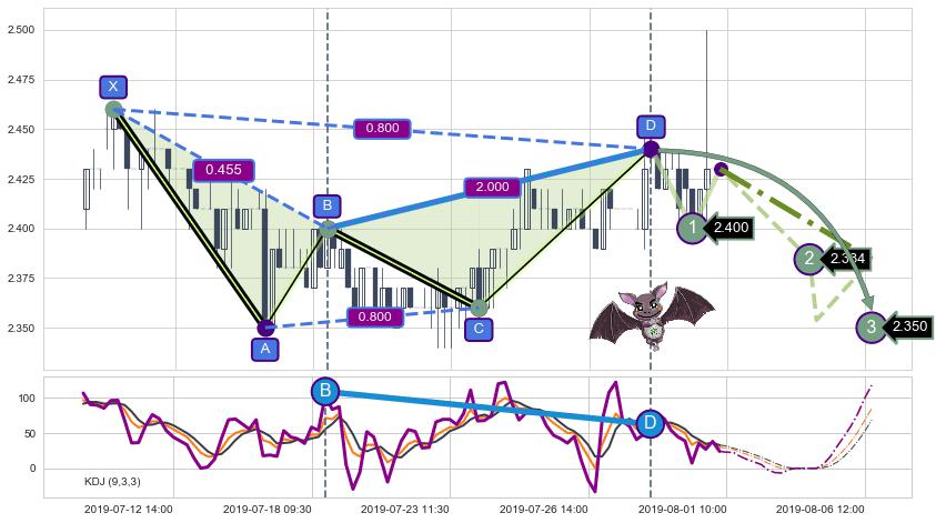 ➣ 已完成【蝙蝠】形态起点X: 07-11:10, 终点D: 07-30:10, 共79交易小时