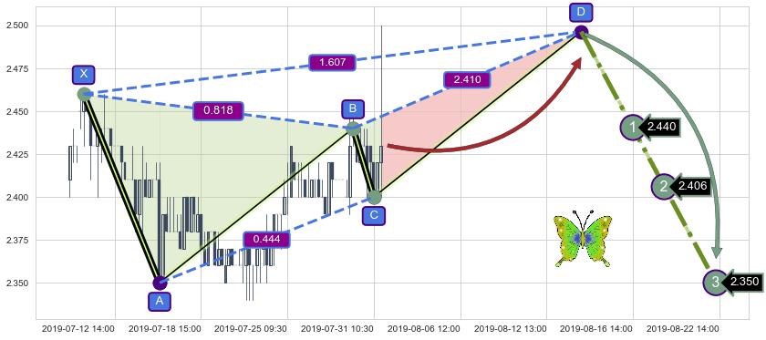 ➣ 未完成【蝴蝶】形态起点X: 07-11:10, 已到达C点: 07-31:10, 预测最终D点: 08-14:11, 共143交易小时