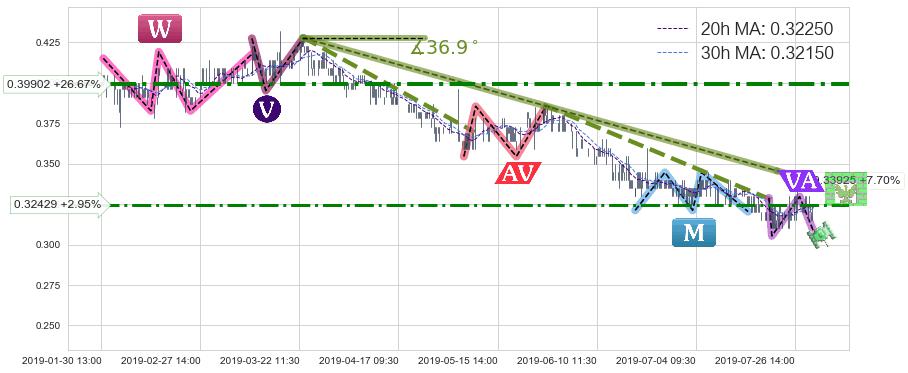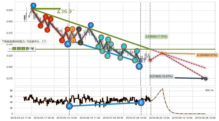 ➢ 预测:2019-08-13 12:00,【小幅反弹】稳定目前下跌趋势的前提下,预测价格:0.33048