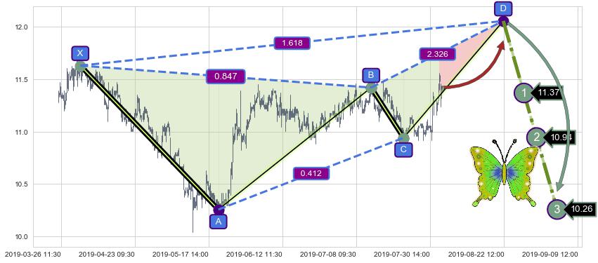 ➣ 未完成【蝴蝶】形态起点X: 04-01:14, 已到达C点: 07-22:14, 预测最终D点: 08-22:11, 共567交易小时