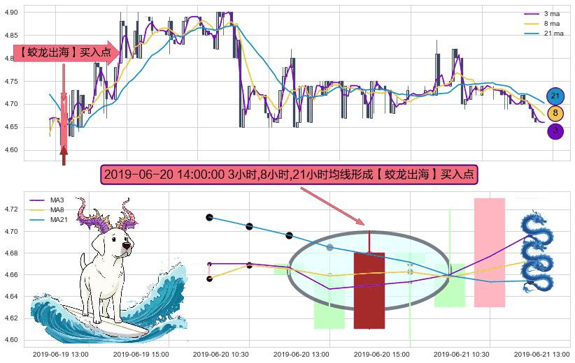 形态多维评估: ⚀ 2019-06-20 14:00:00小时显现 3小时-8小时-21小时均线 【蛟龙出海】买入点 看多信号,后市看涨,买入