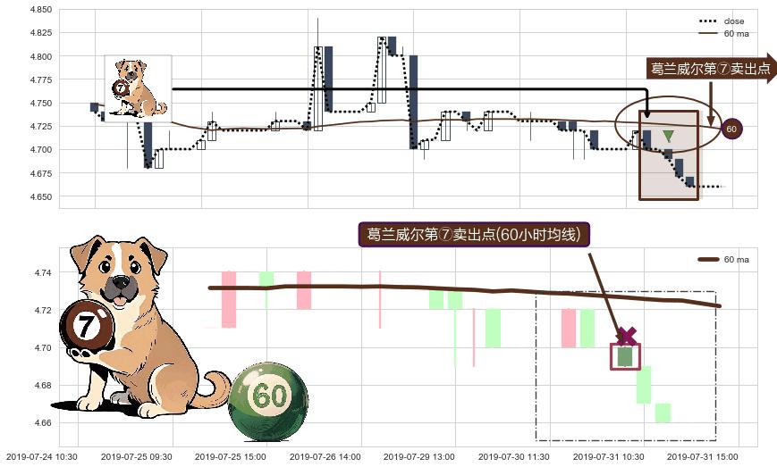 形态多维评估: ⚀ 2019-07-31 09:30:00-小时显现 葛兰威尔均线 60小时均线 第⑦卖出点 下降趋势的中继信号,后市看跌,卖出信号